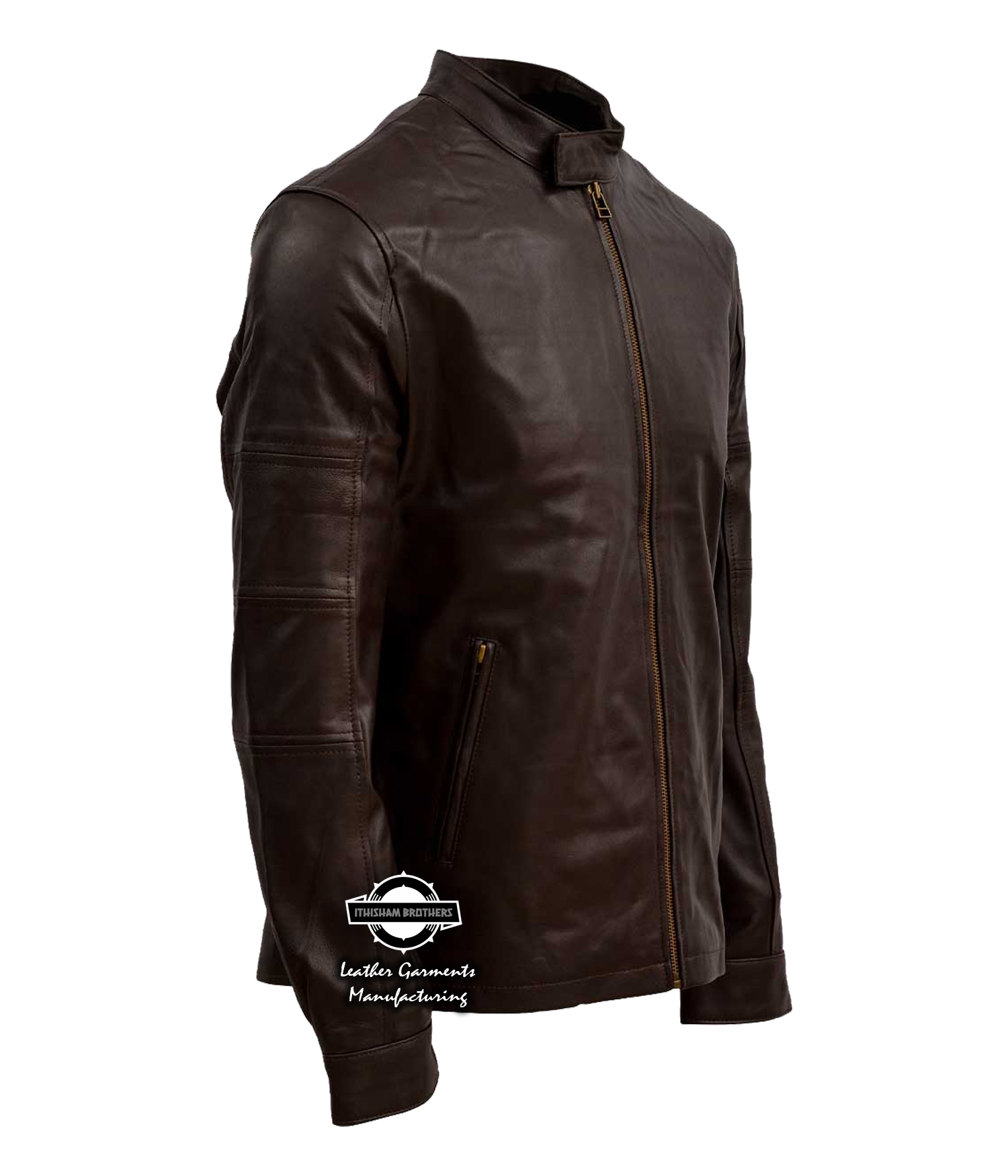 Men’s Dark Brown Café Racer Leather Jacket – Real Cowhide Motorcycle Style